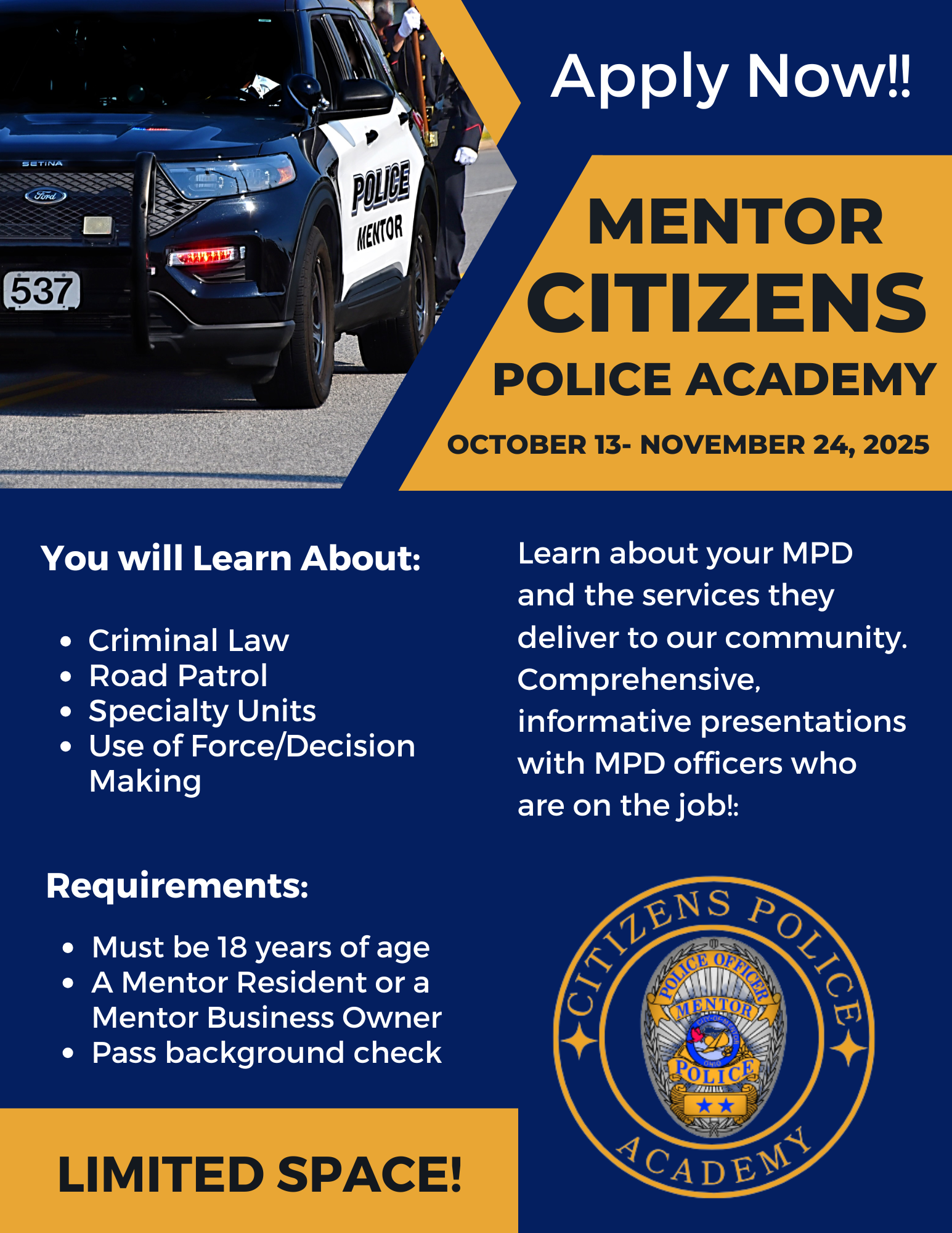 Step into the Badge: Join the Mentor Citizen’s Police Academy!