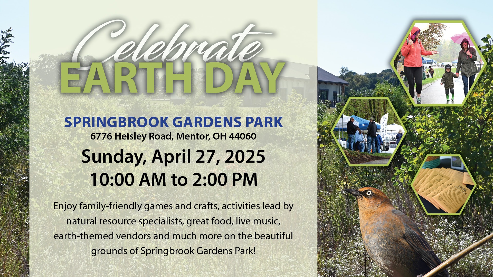 Join the Mentor Natural Resources Division on Sunday, April 27th, 2025, from 10:00 AM to 2:00 PM at Springbrook Gardens Park as we celebrate Earth Day!